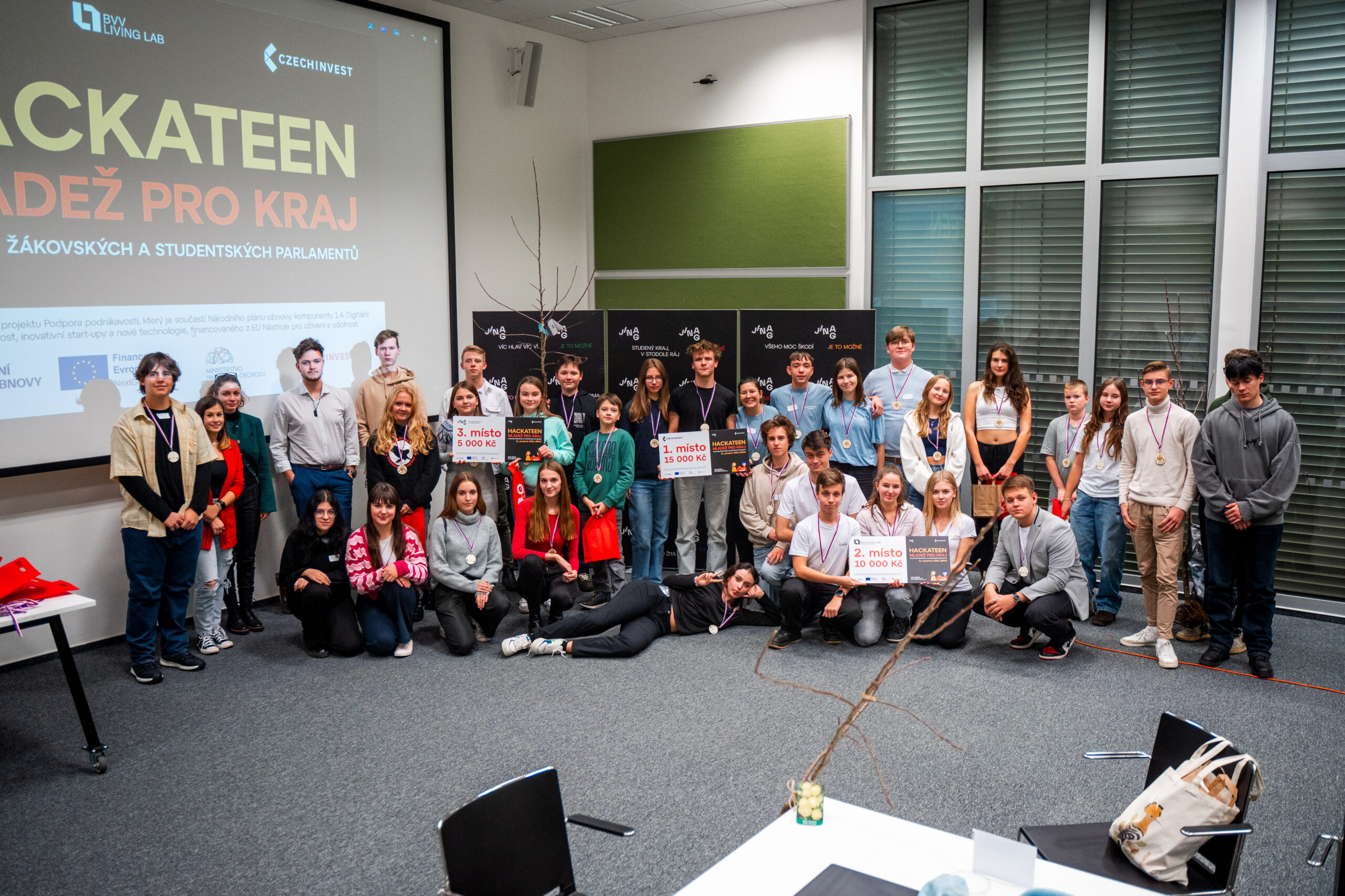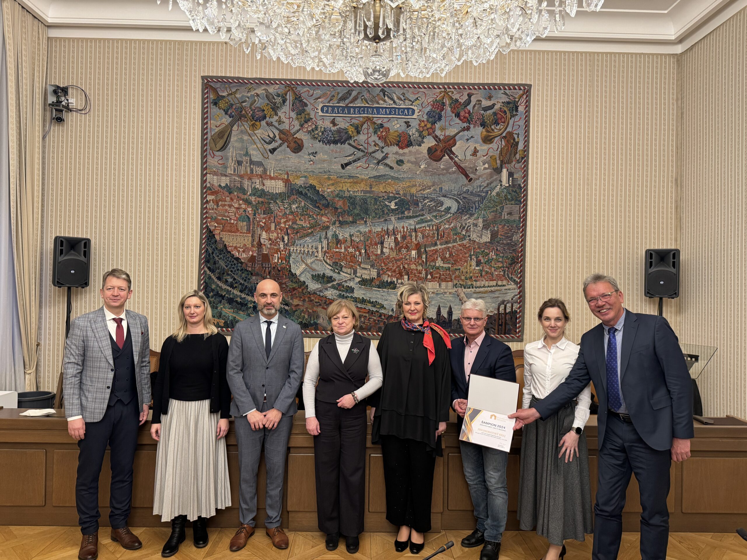 Přebírání ocenění pro ŠAMPIONY Zdravých měst, obcí a regionů společně s Jihomoravským krajem za konkrétní aktivity podporující zdraví, udržitelný rozvoj nebo zapojení komunit. K výhře přispěla akce pořádaná JINAG – Hackateen.