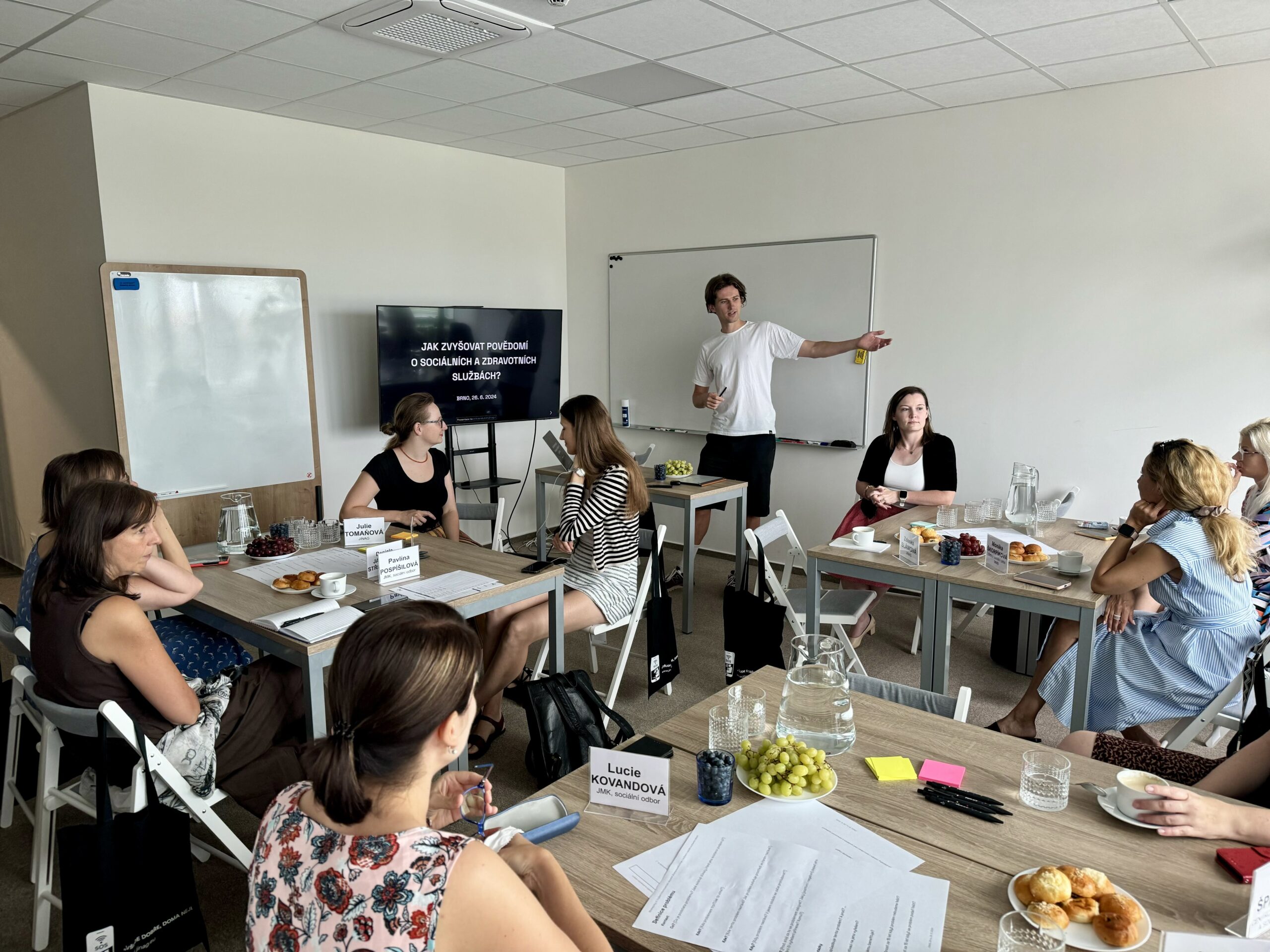 Workshop zaměřený na dvě klíčové otázky: jak identifikovat osoby, které mohou v terénu pomáhat zvyšovat povědomí o dostupných sociálně-zdravotních službách, a jaká je podstata problému nedostatečné informovanosti o existujícím ekosystému služeb.